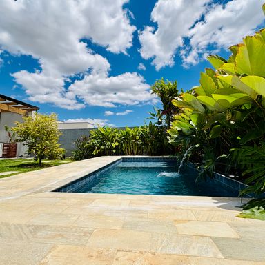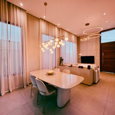 Condominio Cyrela com 292m² de terreno e 150m² de área construída, distribuídos em: ✅ 3 suítes um com closet, ✅ 2 lavabos (interno e externo), ✅ Sala 2 ambientes, ✅ Cozinha, ✅ Área de serviço, ✅ Escritorio, ✅ Área gourmet, ✅Quintal, ✅ Disponível 2 vagas de garagem coberta com infraestrutura para ser instalado Walbox (carregador de carro eletrico). ✅ Casa terrea, ✅ Piscina com aquecimento solar e pontos de hidromassagem, ✅ Planejado na cozinha, banheiros e closet, ✅ Ar condicionado nos dormitorios e sala, ✅ Sistema de energia fotovoltaico, ✅ Ducha fria, Área de lazer com: ✅ Piscina adulto e infantil, ✅ Salão de festa, ✅ Área gourmet, ✅ Academia. E para sua segurança oferece portaria 24h, interfone e sistema de câmeras.
