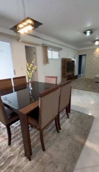 Belíssimo Apartamento Mobiliado com metragem de 148m2 Descrição: 3 Suites, Sala ampla integrada com a sacada gourmet com churrasqueira Lavabo, Cozinha Área de serviço com lavabo3 Vagas de garagem cobertas, Planejados em todo apartamento, ar condicionado, geladeira, cooktop, exaustor, máquina de lavar roupas, sofás, poltronas, mesa, mesinha de sala, aparador, espelhos, tvs, camas. Área de lazer do condomínio: Piscina, Salão de Festa, Academia, Sauna e Brinquedoteca. Agende uma visita!