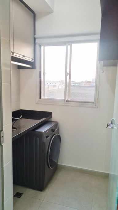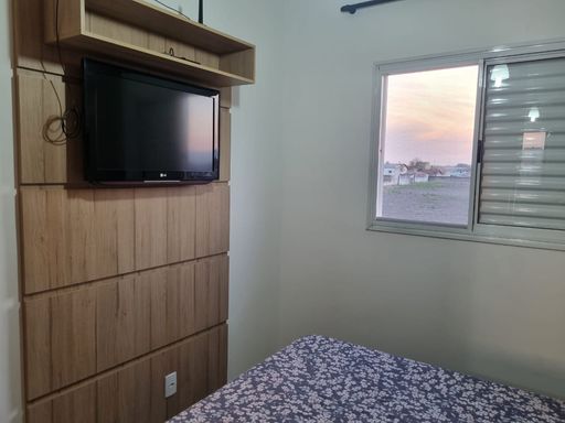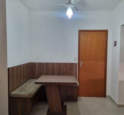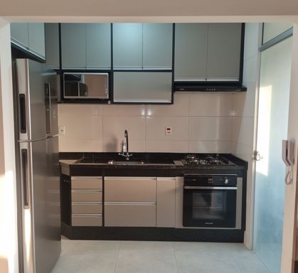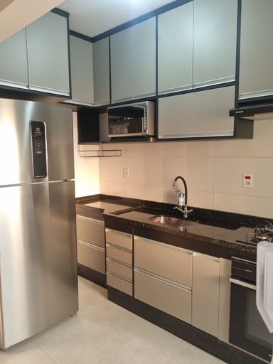 Apartamento com dois dormitórios, sala dois ambientes com sacada, cozinha, área de serviço, 1 vaga de garagem, vaga de visitante, piso todo em porcelanato, área 52,50m².