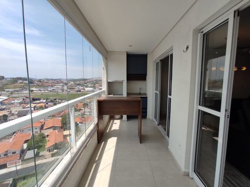 • Sacada gourmet com churrasqueira e fechada com vidro.