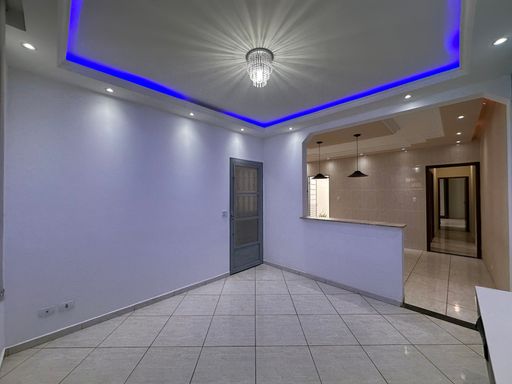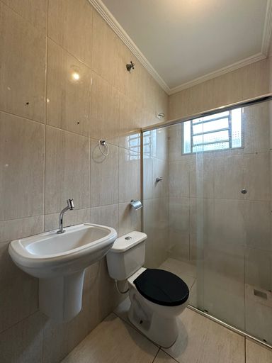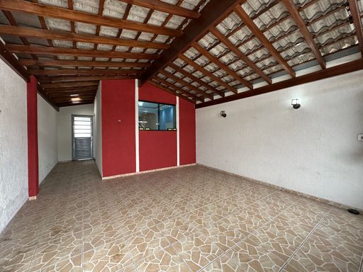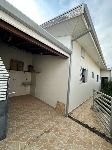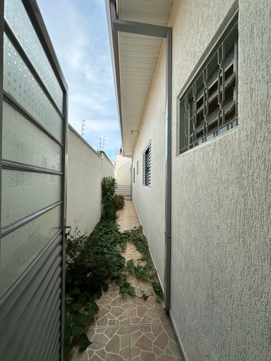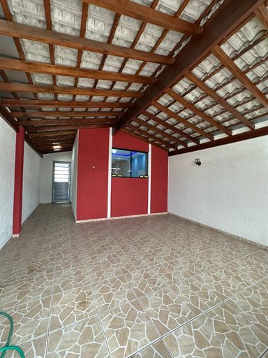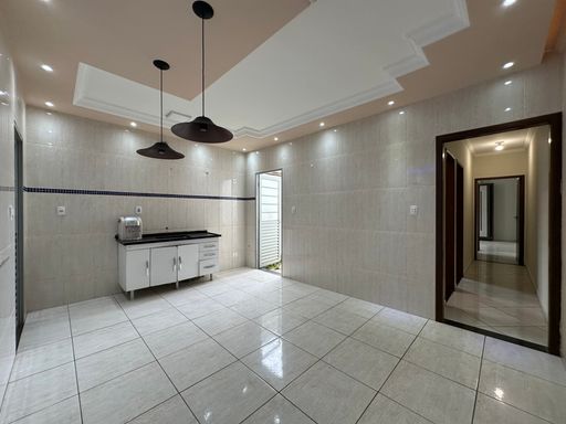 Garagem para dois carros. Dois quartos sendo uma suíte, um banheiro social, jardim no corredor lateral, área gourmet com churrasqueira, teto de gesso com sanca, iluminação moderna spot de led. Na rua tem padaria, posto de saúde, posto de gasolina. Portão automático basculante, acionamento com controle, janela da sala vidro fume blindex.