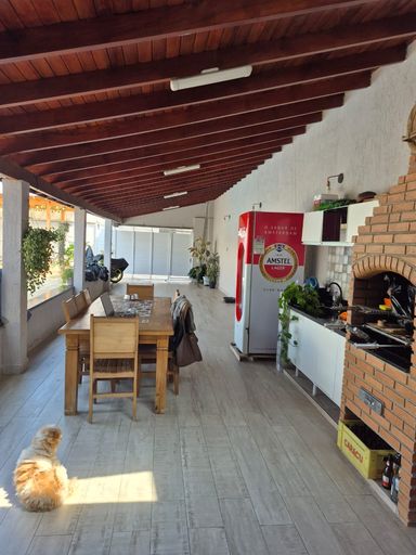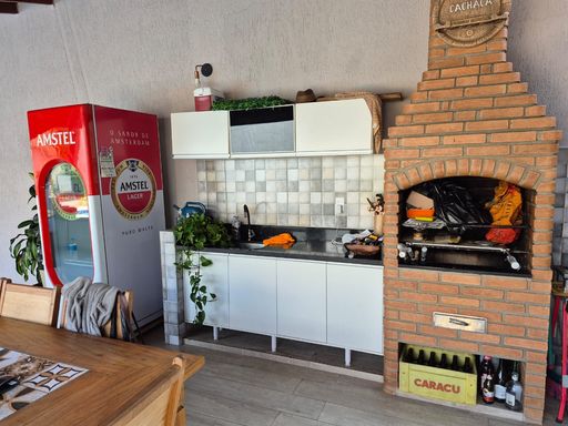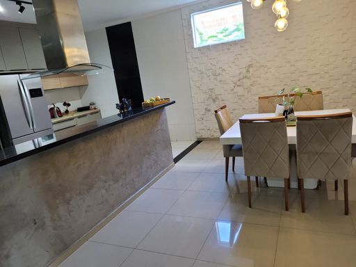 Conta com suíte master com closet, mais 1 suíte + 2 dormitórios, ambientes integrados, jardim de inverno, piscina, churrasqueira e garagem coberta para 2 carros.