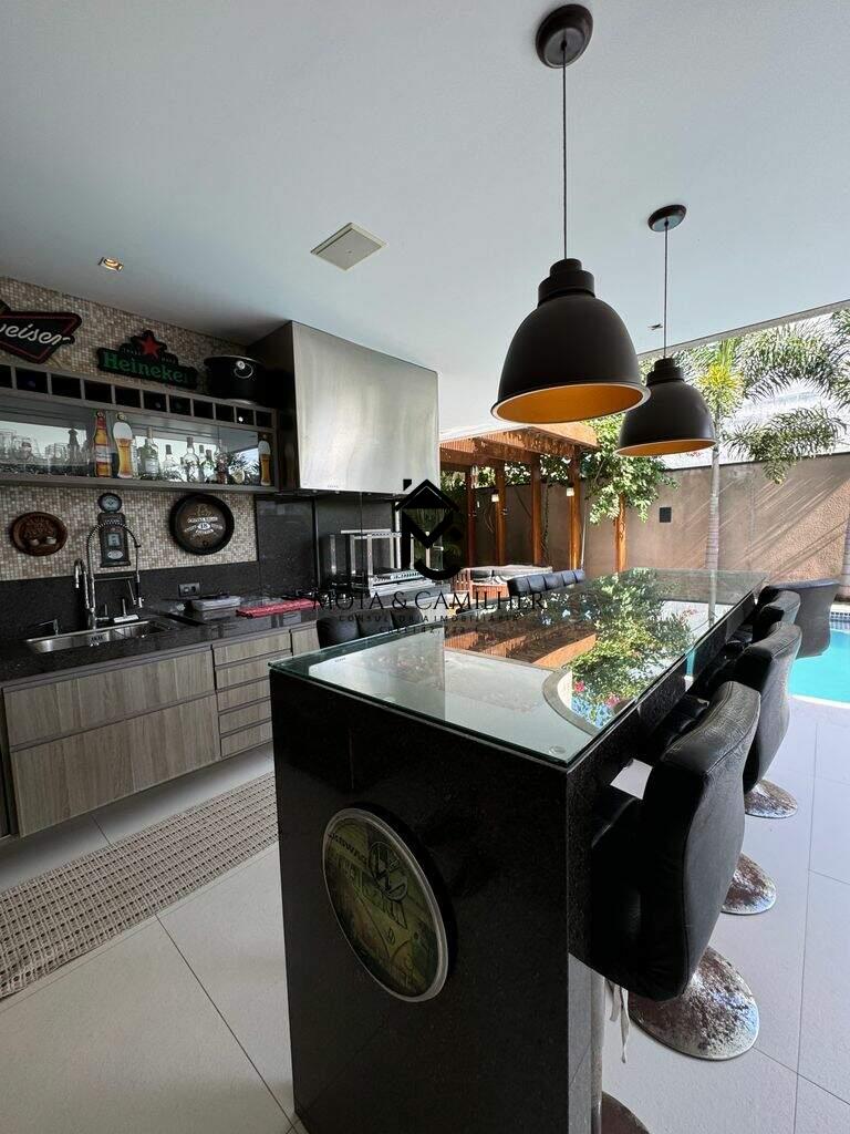 Belíssima Casa em Condomínio Fechado. Condomínio: San Marco Área do Terreno: 505m2 Área Construída: 490m2 Valor de Venda R$3.600.000,00 A casa possui: No pavimento térreo: - Sala de Jantar e estar integradas à cozinha, separadas da área externa gourmet por portas corrediças de vidro e portas de telas de nylon. - ?Lavabo - ?Chapelaria montada entre o lavado e a escada na área onde futuramente poderá ser instalado um elevador, que já tem construído o respectivo poço. - ?Cozinha com planejados - ?Ampla área de serviço com 2 tanques de inox e planejados. - ?Amplo depósito com planejados - ?Banheiro de empregada com box e chuveiro elétrico. No pavimento superior: - 3 Suítes sendo duas suítes de 16m2 com planejados e ar condicionado e uma suite master com 20m2 closet e planejados e Ar Condicionado. - Mezanino circulante com jardim suspenso na lateral e dispondo de roupeiros - ?Mini copa com armários embutidos - ?Sala de TV com alto falantes de teto já instalados e preparado para futura instalação de Home theater. Área de lazer: - Jacuzzi de hidromassagem para 4 pessoas com aquecimento a gás - ?Sauna a vapor com aquecimento a gás. - ?Piscina de 33m3 em azulejos com iluminação subaquática com aquecimento solar. - ?Espaço Gourmet com churrasqueira, fogão de duas bocas armários embutidos. - ?Sistema de som com 6 altos falantes já instalados sendo 2 altos falantes na sala de estar, 2 na sala de jantar e 2 na área gourmet. - ?Preparação para receber telão e compartimento rebatível também já instalado para receber projetor. - 4 vagas de garagem sendo 2 cobertas e 2 descobertas - ?Instalação trifásica com dispositivo de proteção contra sobrecarga elétrica. - ?Abastecimento de gás contendo 02 botijões P45. Área de lazer do condomínio: - Portaria segurança 24hs - Piscinas - Salão de festa - Quiosques com churrasqueiras - Playground - Quadra Poliesportiva
