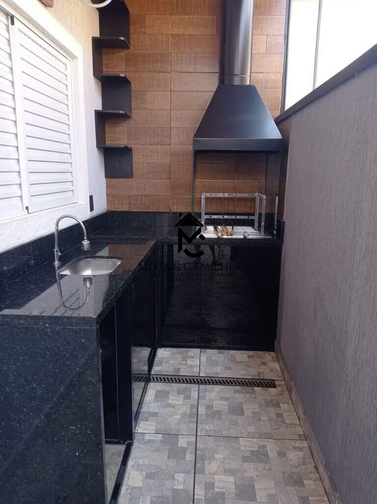 Casa com varanda gourmet á venda em condomínio! 150 m2 105 m2 3 dormitórios sendo uma suíte Banheiro social Lavanderia Armários planejados em todos os ambientes Ar condicionado nos quartos e sala Área gourmet com churrasqueira 2 vagas de garagem Agende uma Visita!
