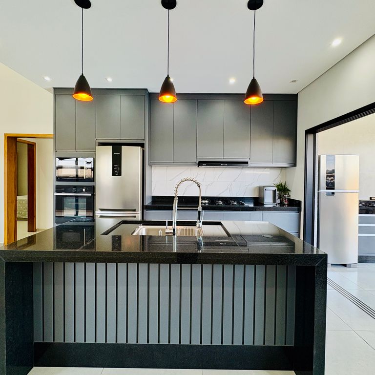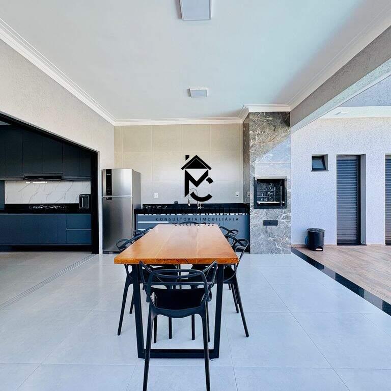 ? Seu Novo Padrão de Vida te Espera em Condomínio de Alto Padrão! ? Luxo, Sofisticação e Lazer Completo em uma Residência Exclusiva. Descubra o prazer de morar em uma casa onde cada detalhe foi pensado para o seu conforto. Localizada em um dos condomínios mais desejados da região, esta residência é o refúgio perfeito para sua família ? unindo o requinte do design moderno com a praticidade de um lar pronto para morar. ? Área Construída: 211,11 m² de pura elegância em um terreno de 375 m² ? Dormitórios: 3 quartos, sendo 1 Suíte Master e 2 dormitórios com Demi-Suíte (banheiro compartilhado com duas portas), garantindo privacidade e funcionalidade para toda a família ? Ambientes Sociais: Duas salas amplas e arejadas, com teto rebaixado em gesso e iluminação em LED, criando atmosferas aconchegantes e sofisticadas ? Cozinha Planejada: Moderna, funcional e totalmente equipada para suas criações culinárias ? Espaço Gourmet dos Sonhos: Área de lazer completa com churrasqueira e integração total à área externa ? perfeita para receber amigos e celebrar momentos especiais ???? Piscina Privativa: Desfrute de momentos de relaxamento e diversão com total privacidade ? Acabamentos Premium: Piso em porcelanato e materiais de alto padrão em todos os ambientes ? Comodidades: Lavanderia e 1 lavabo de apoio ? A casa está pronta para morar! É só entrar e viver o melhor da vida. ? Estrutura e Lazer do Condomínio: ? Portaria 24 h e ronda motorizada ? ? Piscinas, salão de festas e espaço gourmet com churrasqueira a carvão ? ? Academia equipada ? ? Quadra poliesportiva e praça ? ? Lago, áreas verdes e pomar com árvores frutíferas ? ? Playground e espaço pet ? ? Condição Especial: Proprietário avalia permuta em imóvel de menor valor. ? Agende sua visita e venha conhecer essa joia em um dos melhores condomínios da região!