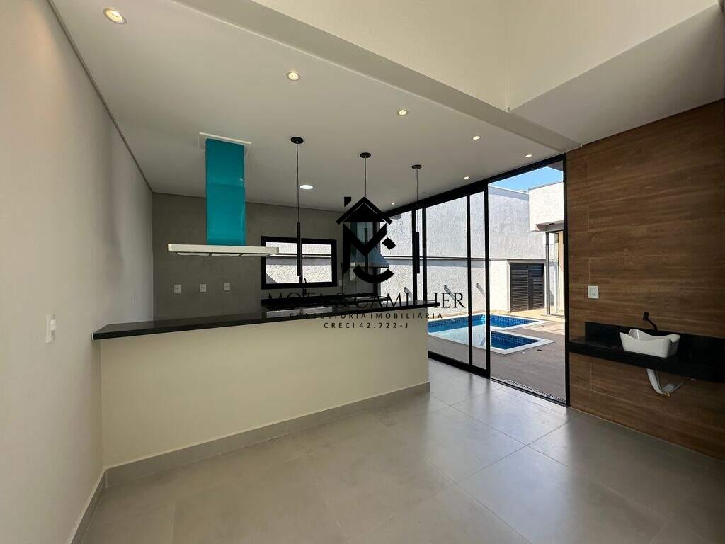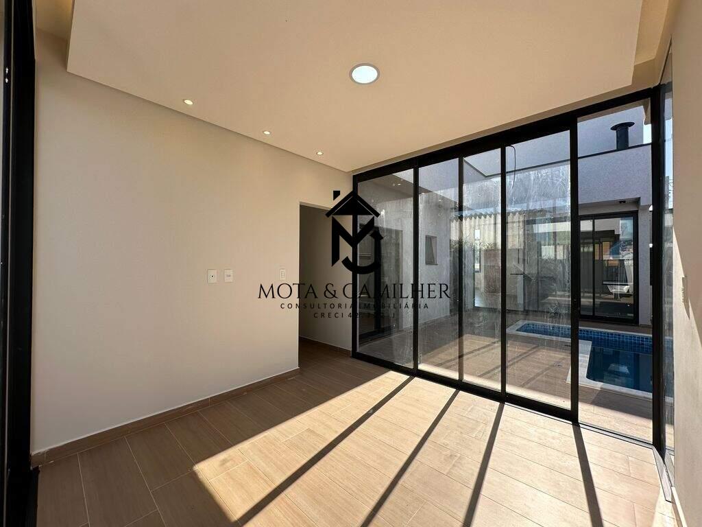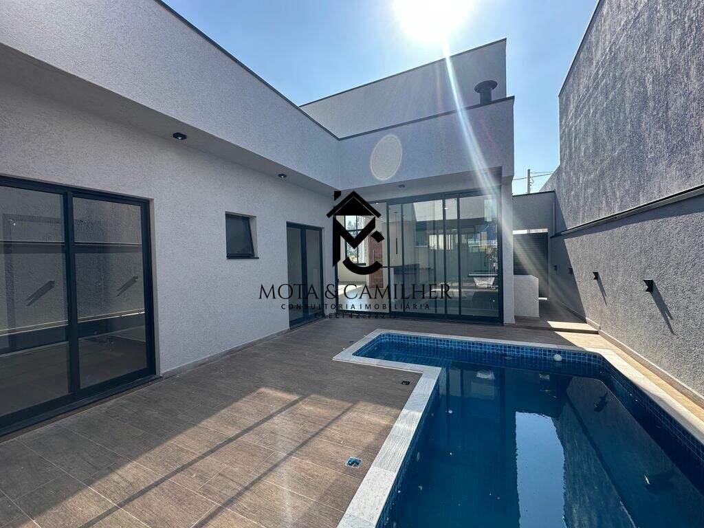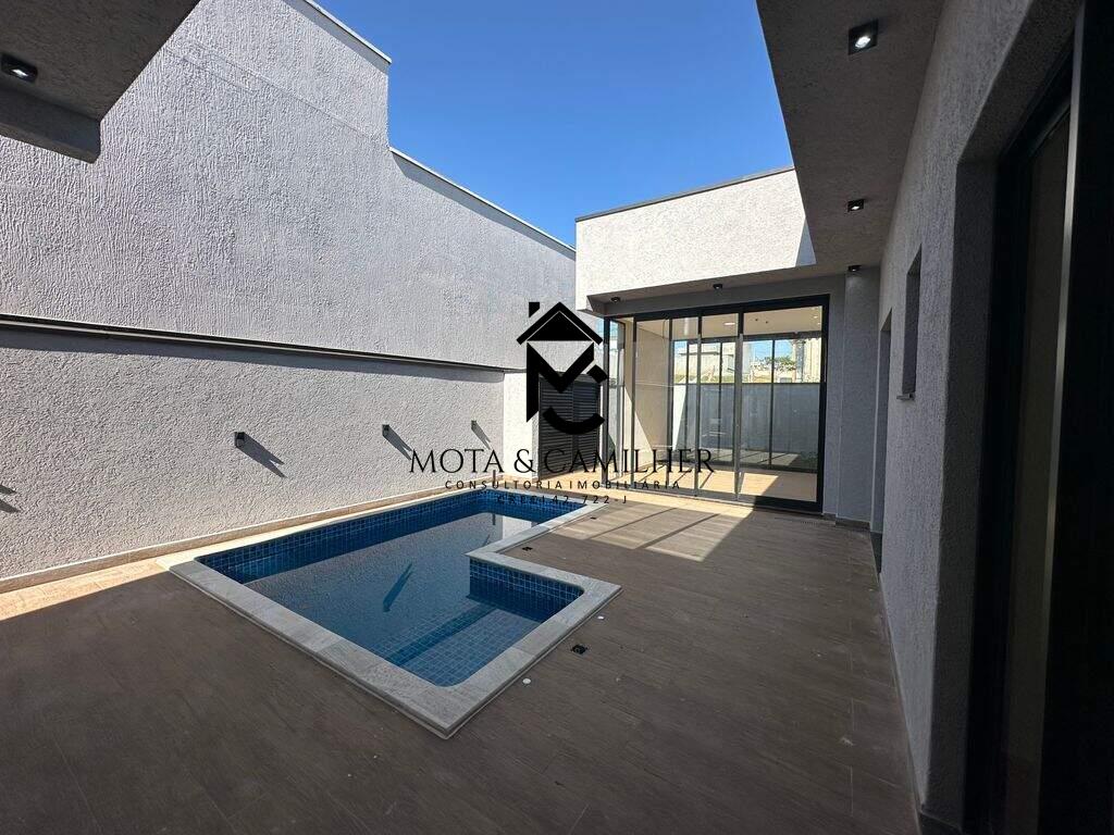 Residência térrea com piscina em condomínio Projetada para quem valoriza conforto, sofisticação e integração com a natureza, esta elegante casa térrea conta com 3 dormitórios sendo 1 suíte espaçosa, lavabo, salas de estar e jantar com conceito aberto, cozinha moderna integrada com a área gourmet, ideal para receber com estilo. A piscina privativa harmoniza com a arquitetura da casa, proporcionando momentos únicos de lazer e relaxamento. A garagem comporta até 4 veículos. Localizada em um condomínio com infraestrutura de lazer completa, essa é a escolha perfeita para quem busca qualidade de vida e segurança. Venha conhecer! Agende já a sua visita.