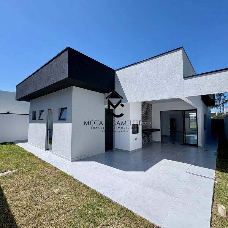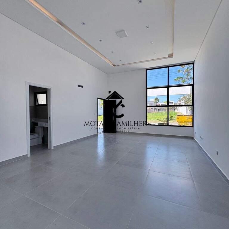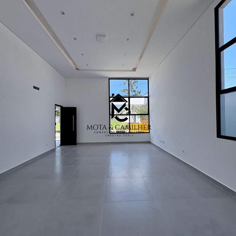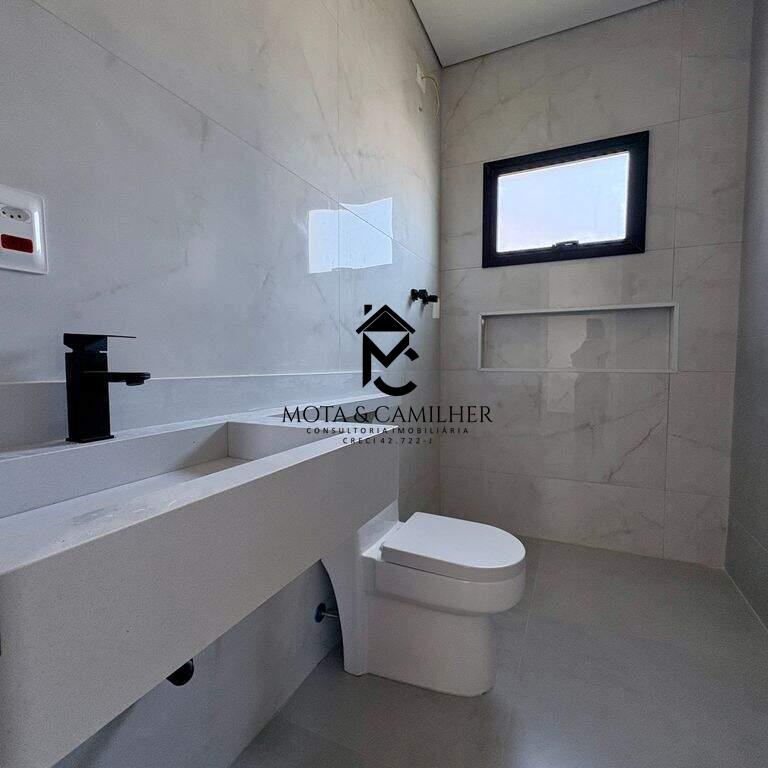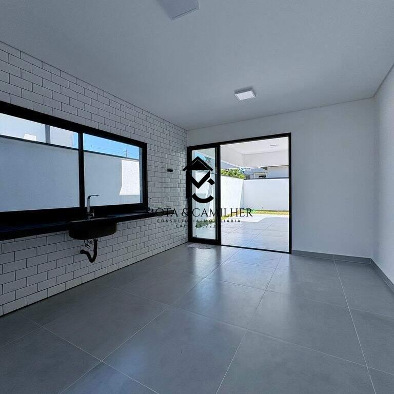 Casa nova térrea com terreno de 300m² e 168m² de área construída, distribuídos em 3 suítes, sala com cozinha integrada, lavabo, área gourmet com churrasqueira, quintal e 2 vagas de garagem cobertas. Infra de ar condicionado nas 3 suítes e na sala. Preparação de carro elétrico, boiler, sistema fotovoltaica, preparação de hidráulica e elétrica para piscina caso queira colocar. Condomínio completo com piscina, salão de festa, academia, quadra de poliesportiva, playground, minimercado e portaria 24h.