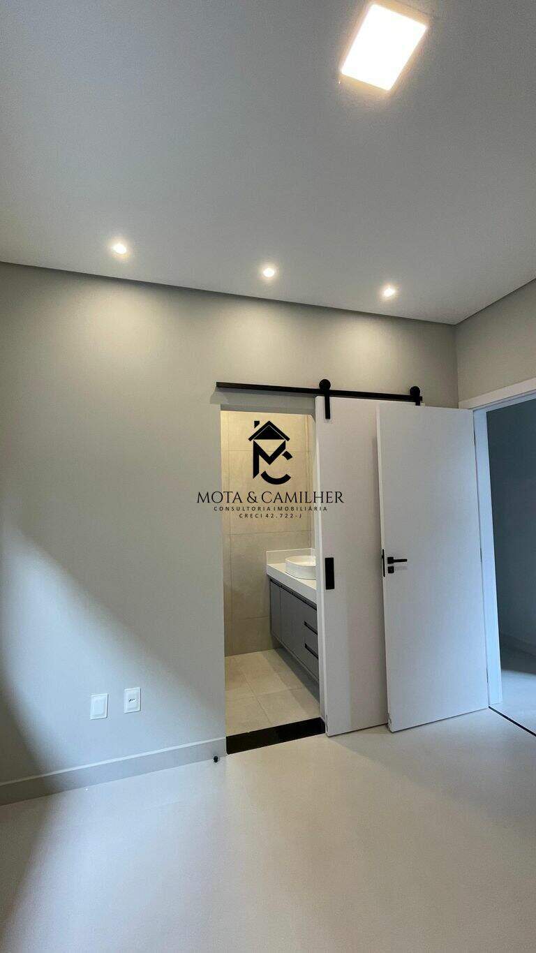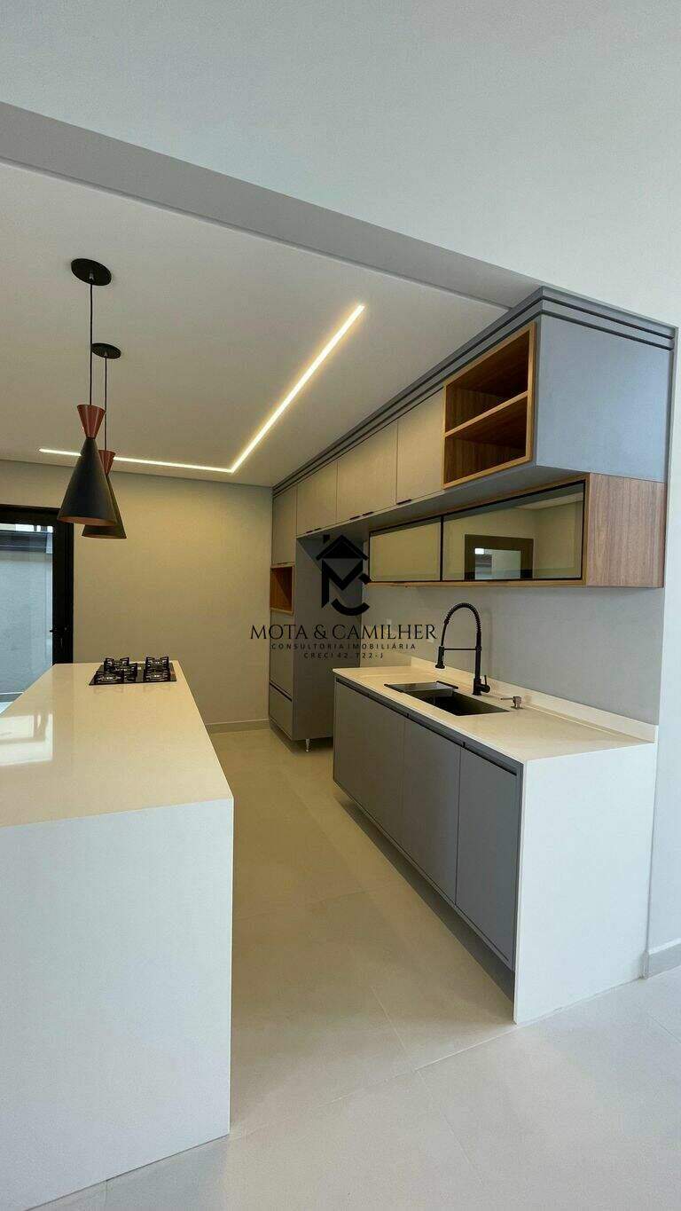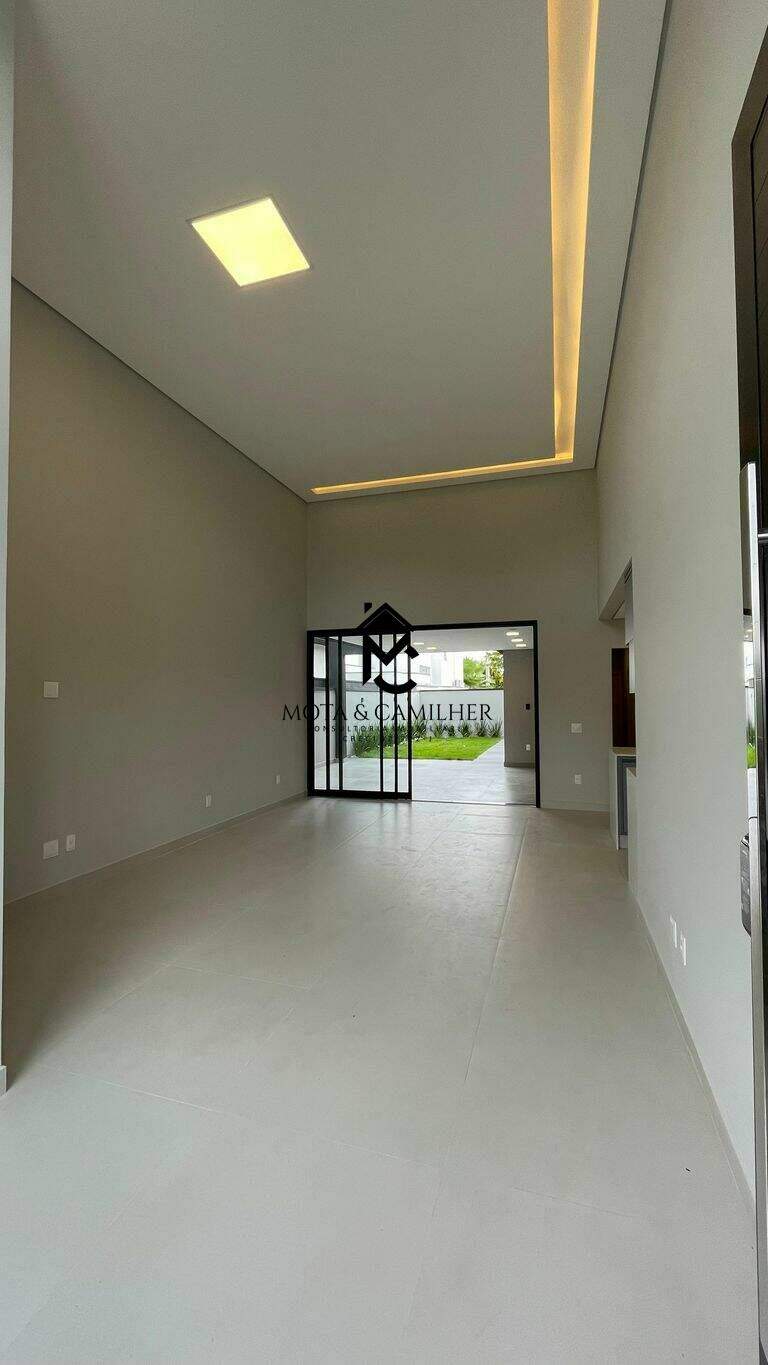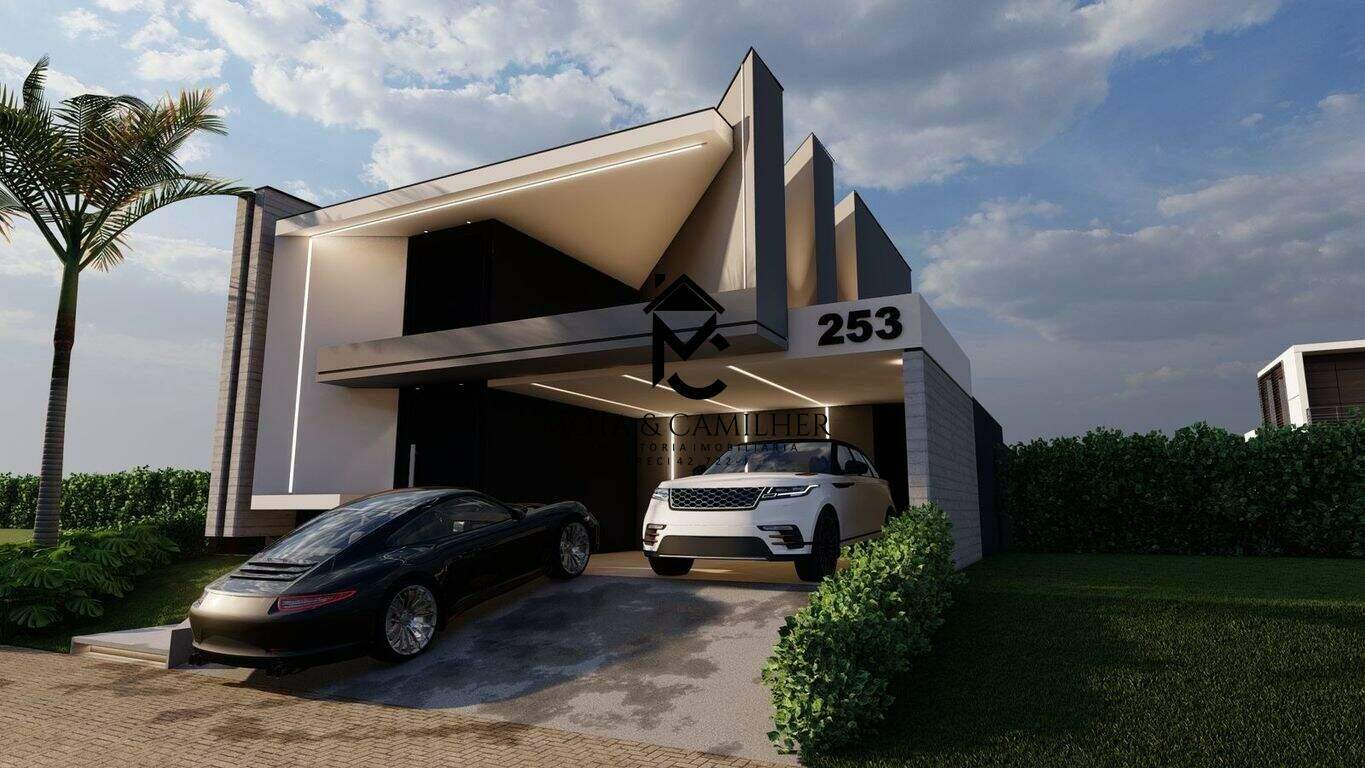 Linda casa térrea recém construída e condomínio fechado. A casa contém: ? Terreno - 300 m² ? Área construída - 178,90m² ? 03 suítes sendo 01 suíte master e closet. ? Escritório ? Pé direito alto de 4,80 m na sala de estar e jantar; ? Porta entrada pivotante em alumínio preto; ? Porta balcão na sala de estar e jantar em alumínio preto; ? Janelas com persiana integrada automatizada em alumínio preto e tela mosqueteiro; ? Piso porcelanato primeira linha ? Bancadas e nichos dos banheiros/lavabo em branco prime; ? Balcão da cozinha e ilha em quartzo branco linha slim e área gourmet em Pedra São Gabriel velvet. ? Torneiras monocomando; ? Torneira tipo gourmet na cozinha. ? Preparação para 5 pontos de ar condicionado (suítes, sala e escritório); ? Preparação para água quente.