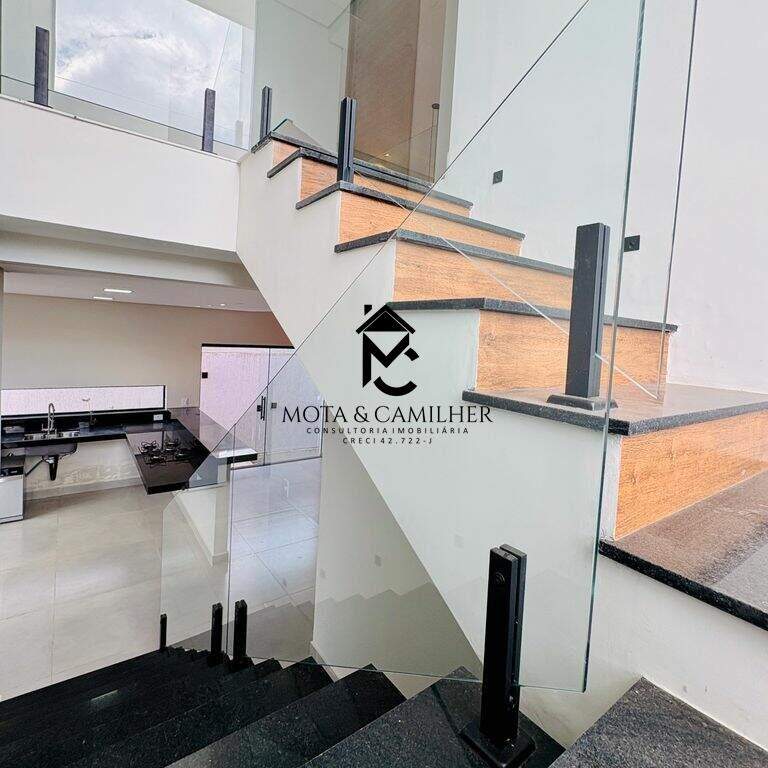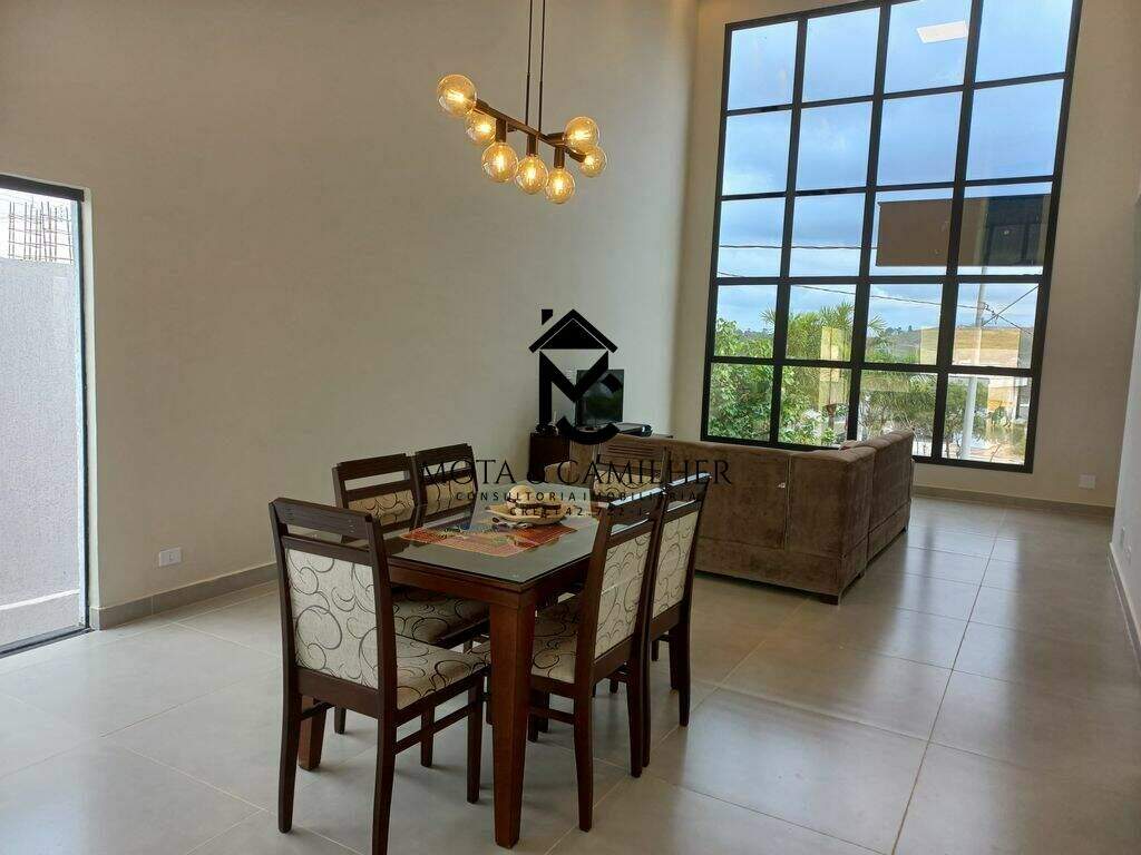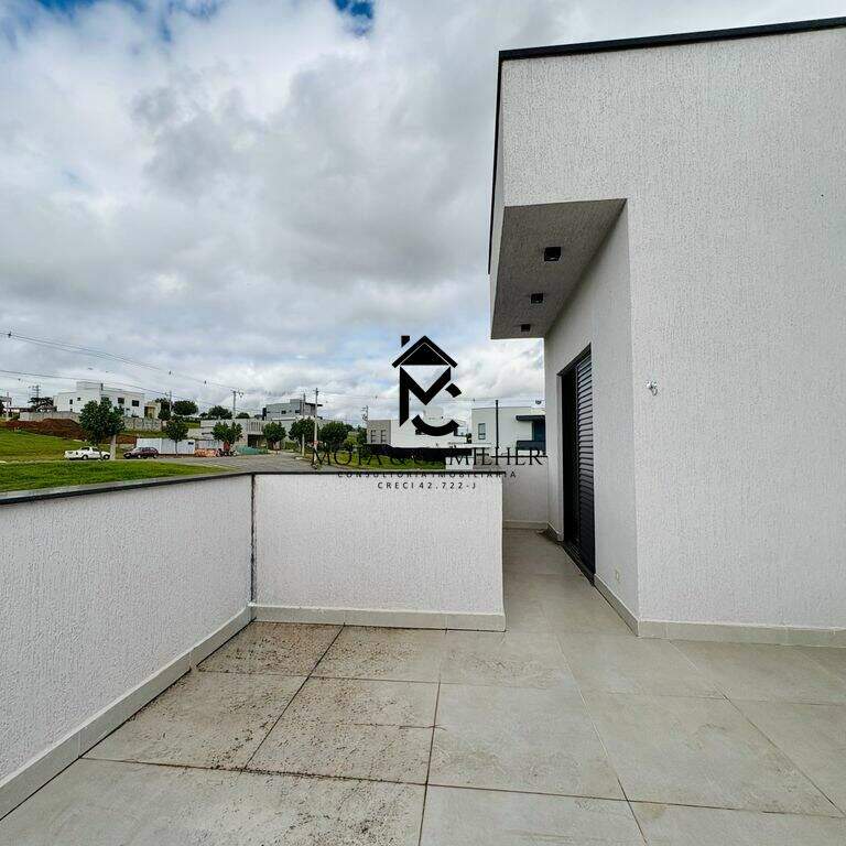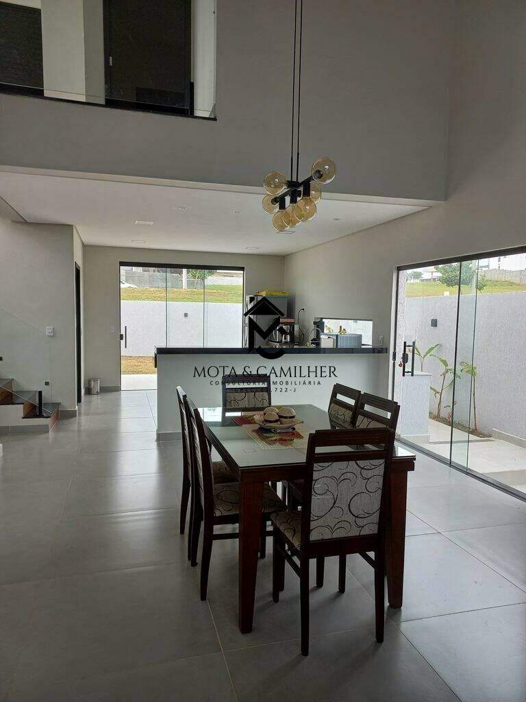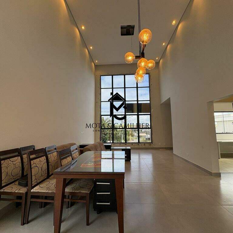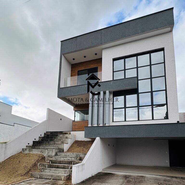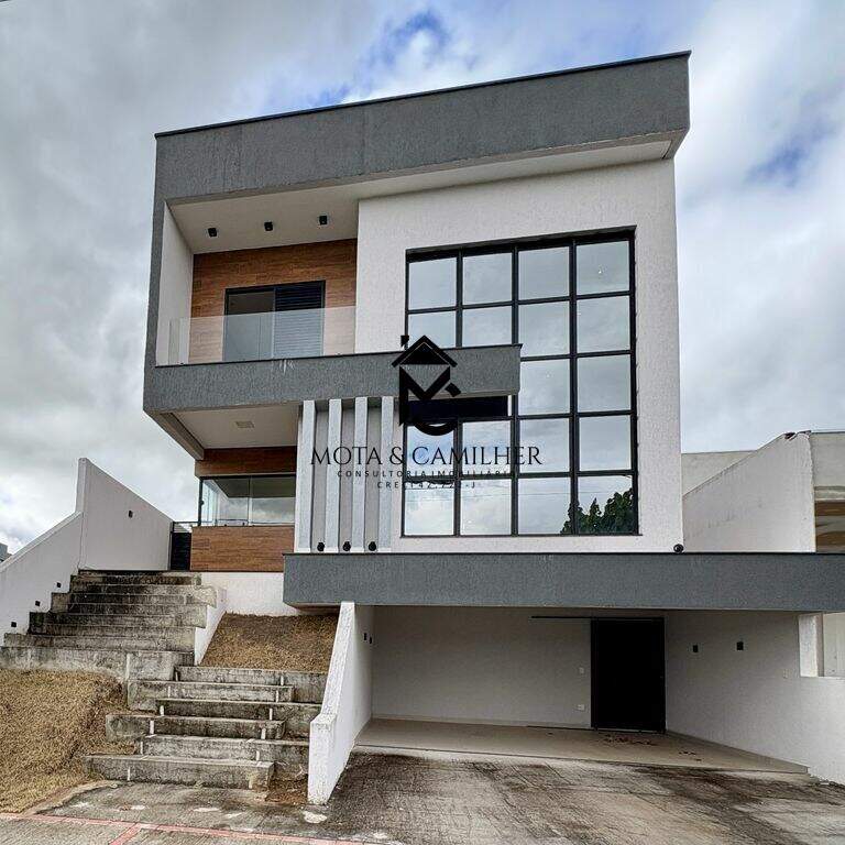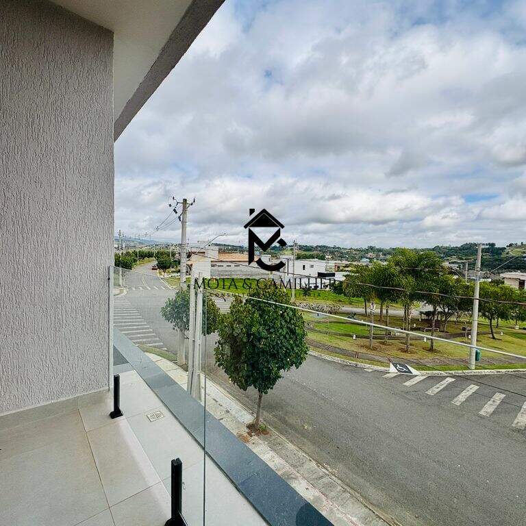 Sobrado com 202m² de área construída. Distribuídas em 3 dormitórios, sendo 2 suítes uma com closet e varanda, uma suíte júnior com varanda e um dormitório no andar inferior, salas de estar e jantar com pé direito duplo, cozinha americana, área Gourmet, 4 banheiros, escritório com entrada privativa, lavanderia espaçosa, garagem para 4 veículos, sendo 2 cobertos. Vista permanente e sem vizinhos de frente. Encanamento e fiação prontos para futura instalação de piscina. Condomínio com área de lazer completa: salão de festas, piscina de borda infinita, sala de jogos, academia, brinquedoteca, área para caminhada, playground, quadra poliesportiva, campo de futebol e área gourmet. Portaria e Segurança 24h.