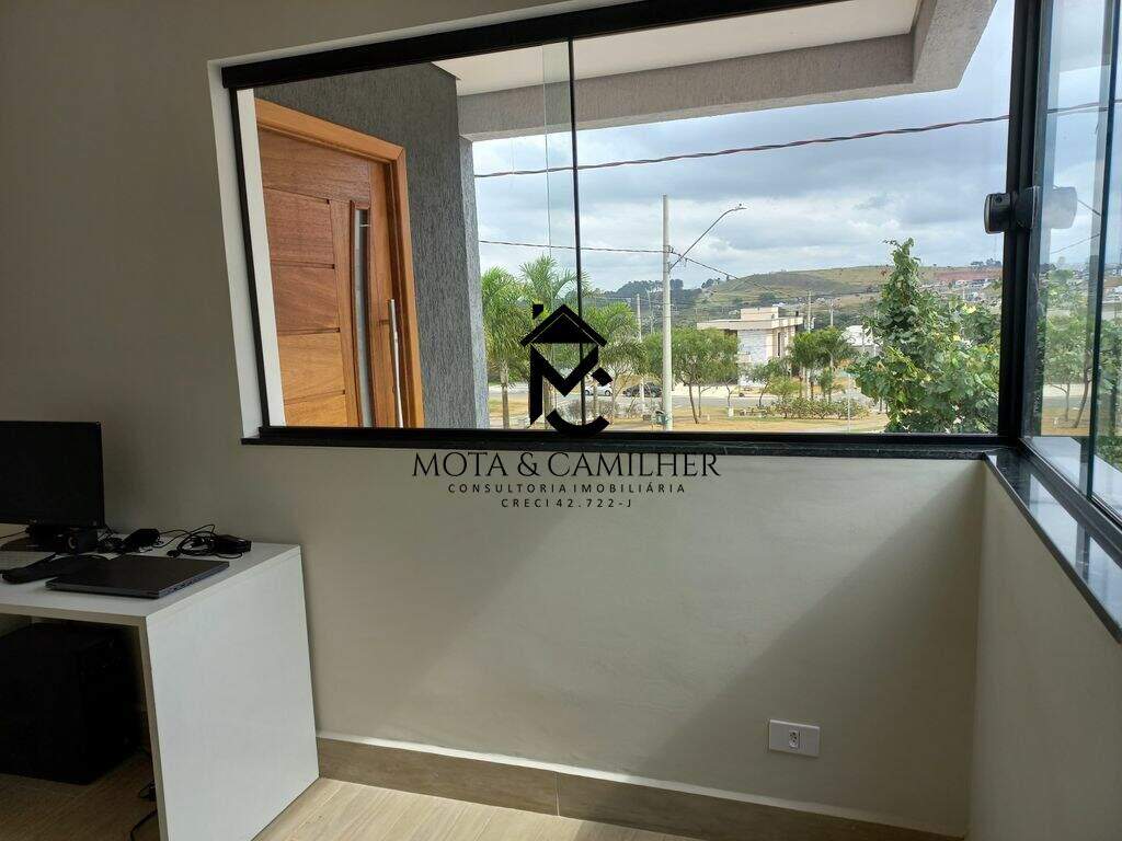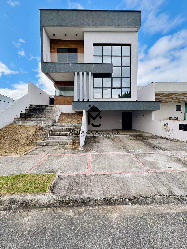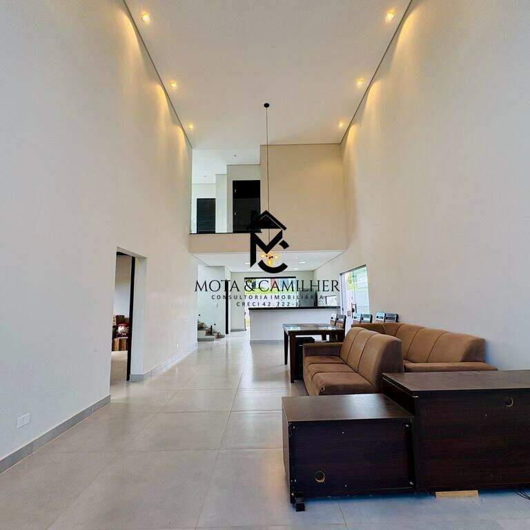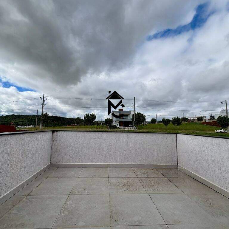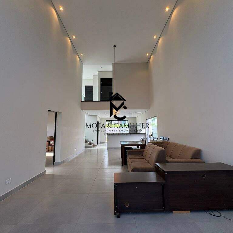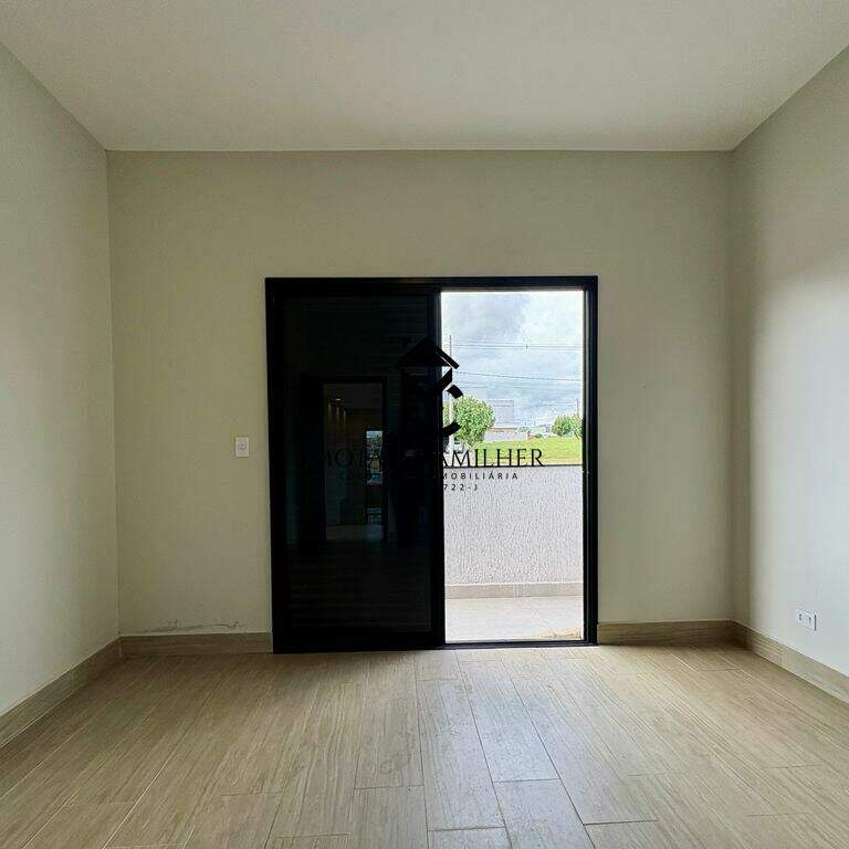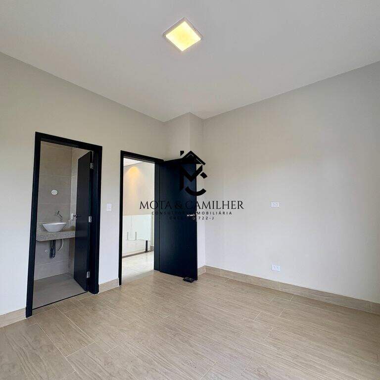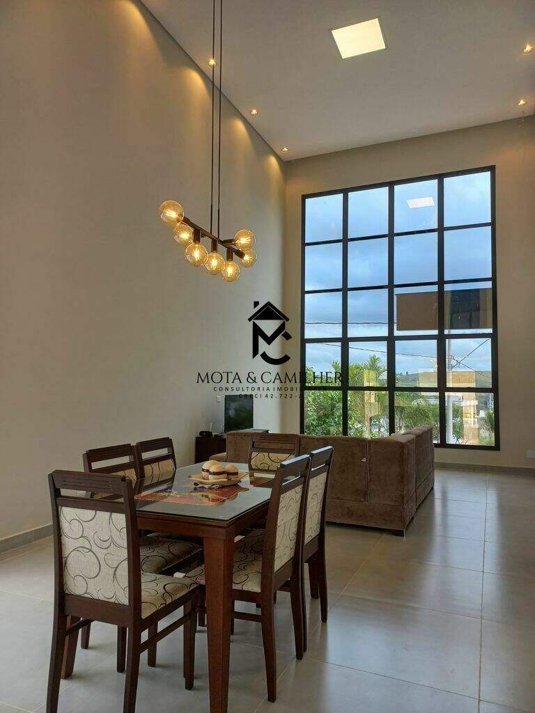 Sobrado com 202m² de área construída. Distribuídas em 3 dormitórios, sendo 2 suítes uma com closet e varanda, uma suíte júnior com varanda e um dormitório no andar inferior, salas de estar e jantar com pé direito duplo, cozinha americana, área Gourmet, 4 banheiros, escritório com entrada privativa, lavanderia espaçosa, garagem para 4 veículos, sendo 2 cobertos. Vista permanente e sem vizinhos de frente. Encanamento e fiação prontos para futura instalação de piscina. Condomínio com área de lazer completa: salão de festas, piscina de borda infinita, sala de jogos, academia, brinquedoteca, área para caminhada, playground, quadra poliesportiva, campo de futebol e área gourmet. Portaria e Segurança 24h.