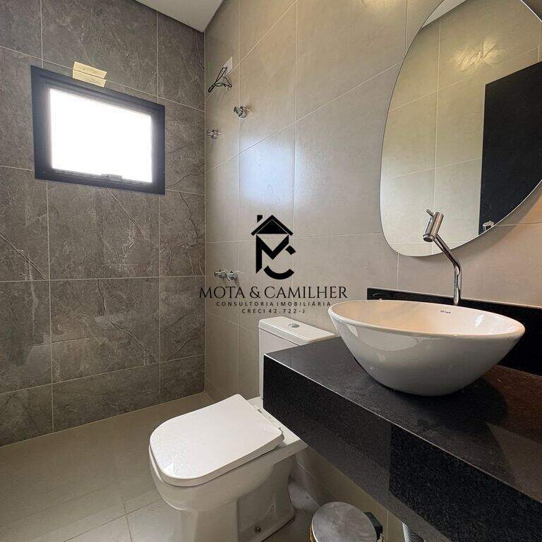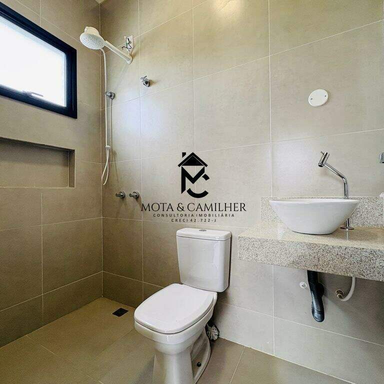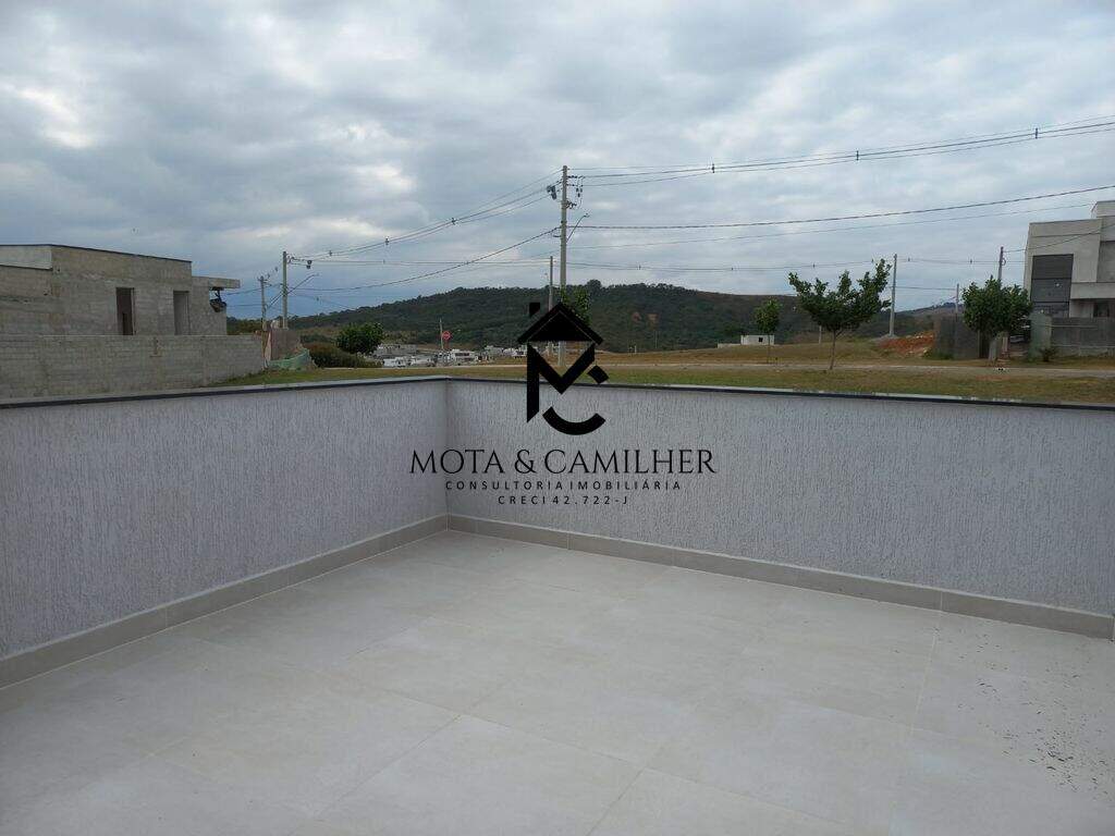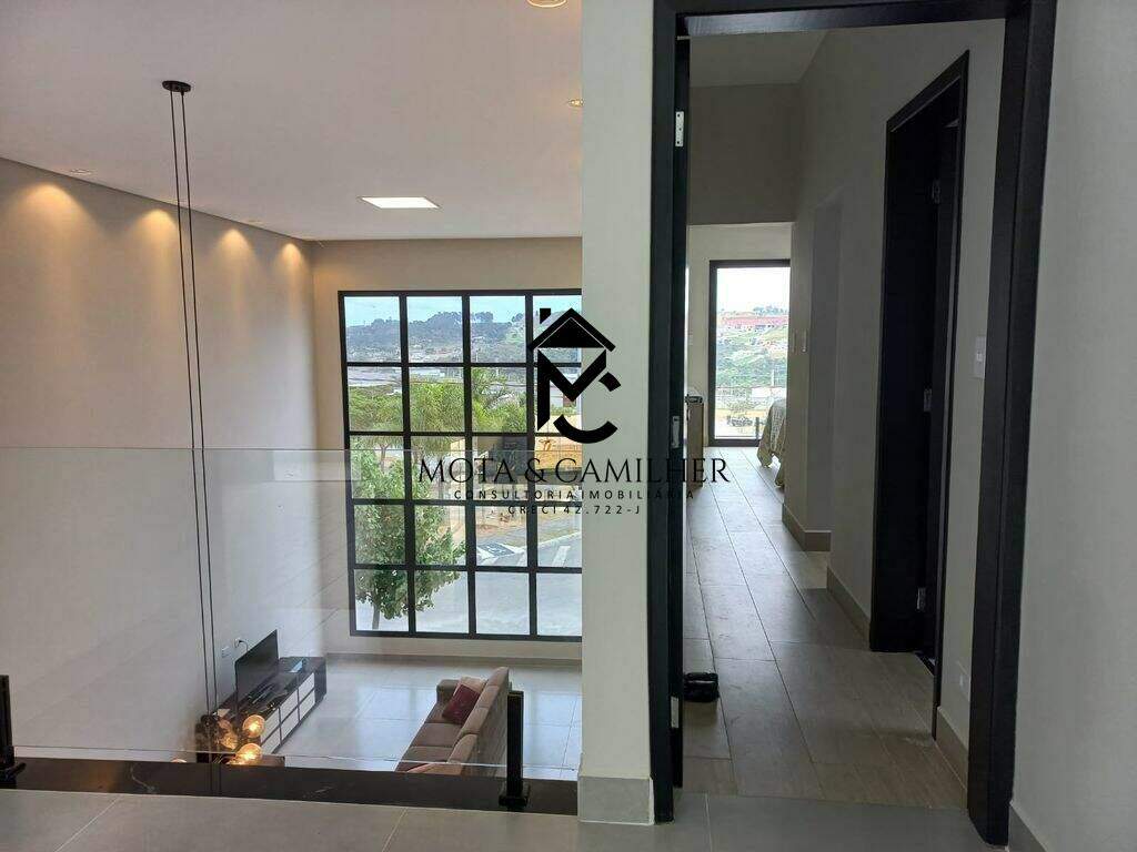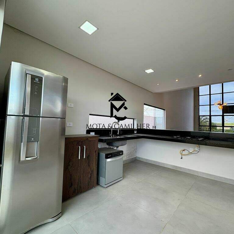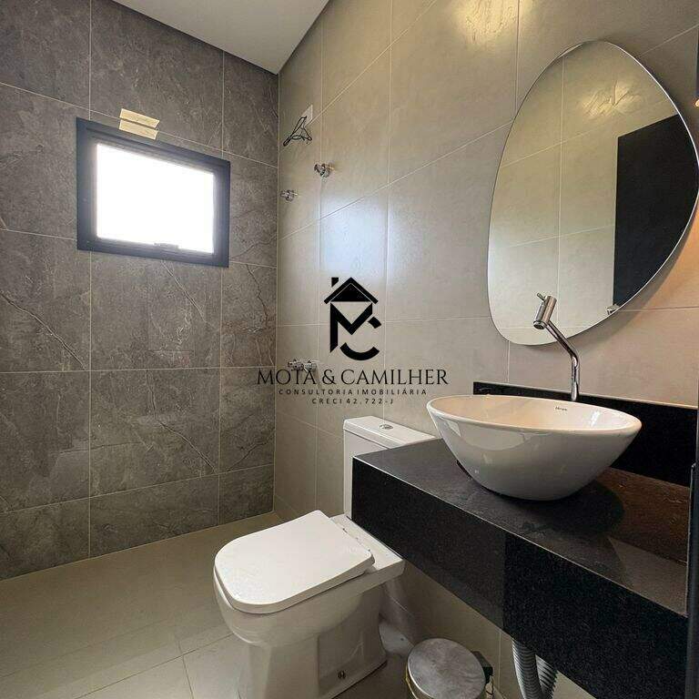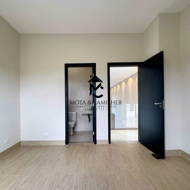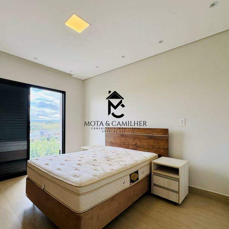 Sobrado com 202m² de área construída. Distribuídas em 3 dormitórios, sendo 2 suítes uma com closet e varanda, uma suíte júnior com varanda e um dormitório no andar inferior, salas de estar e jantar com pé direito duplo, cozinha americana, área Gourmet, 4 banheiros, escritório com entrada privativa, lavanderia espaçosa, garagem para 4 veículos, sendo 2 cobertos. Vista permanente e sem vizinhos de frente. Encanamento e fiação prontos para futura instalação de piscina. Condomínio com área de lazer completa: salão de festas, piscina de borda infinita, sala de jogos, academia, brinquedoteca, área para caminhada, playground, quadra poliesportiva, campo de futebol e área gourmet. Portaria e Segurança 24h.