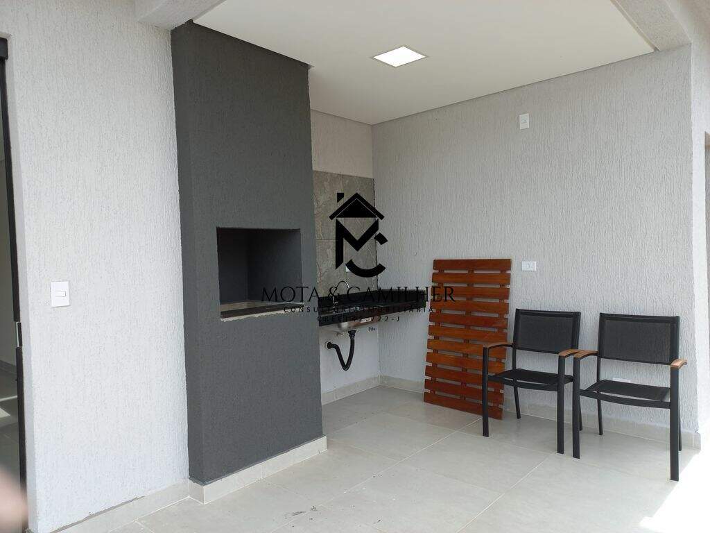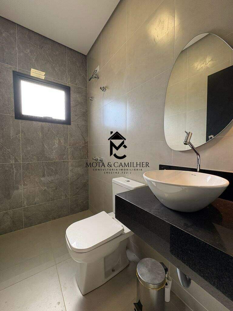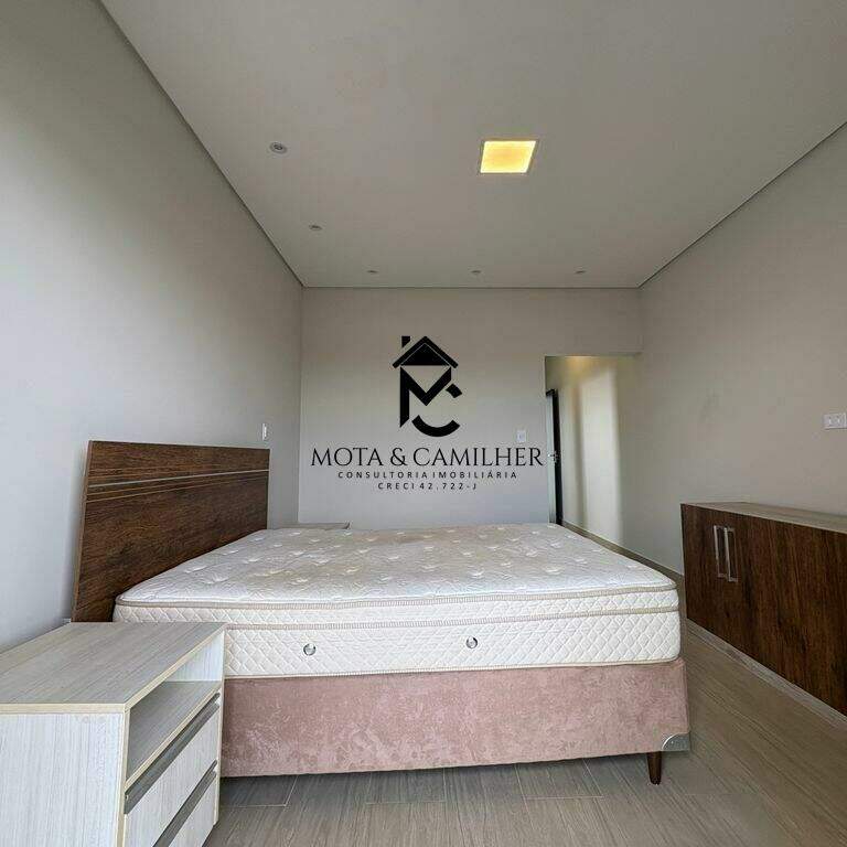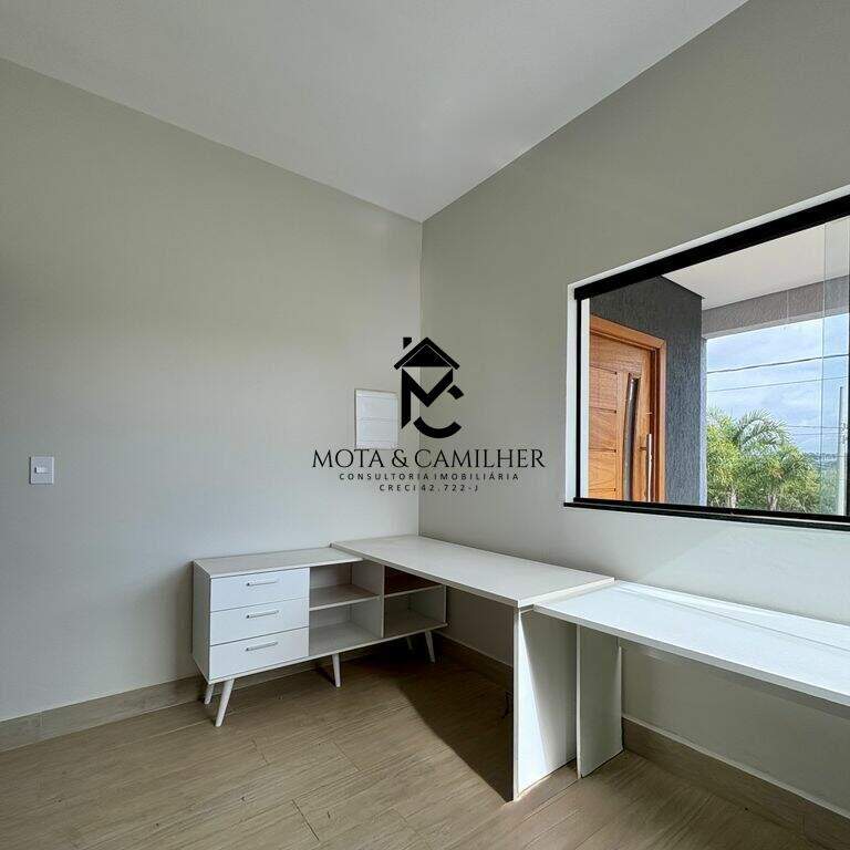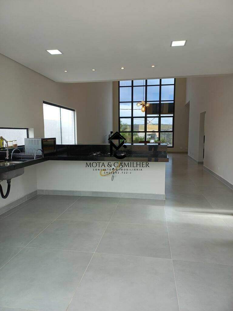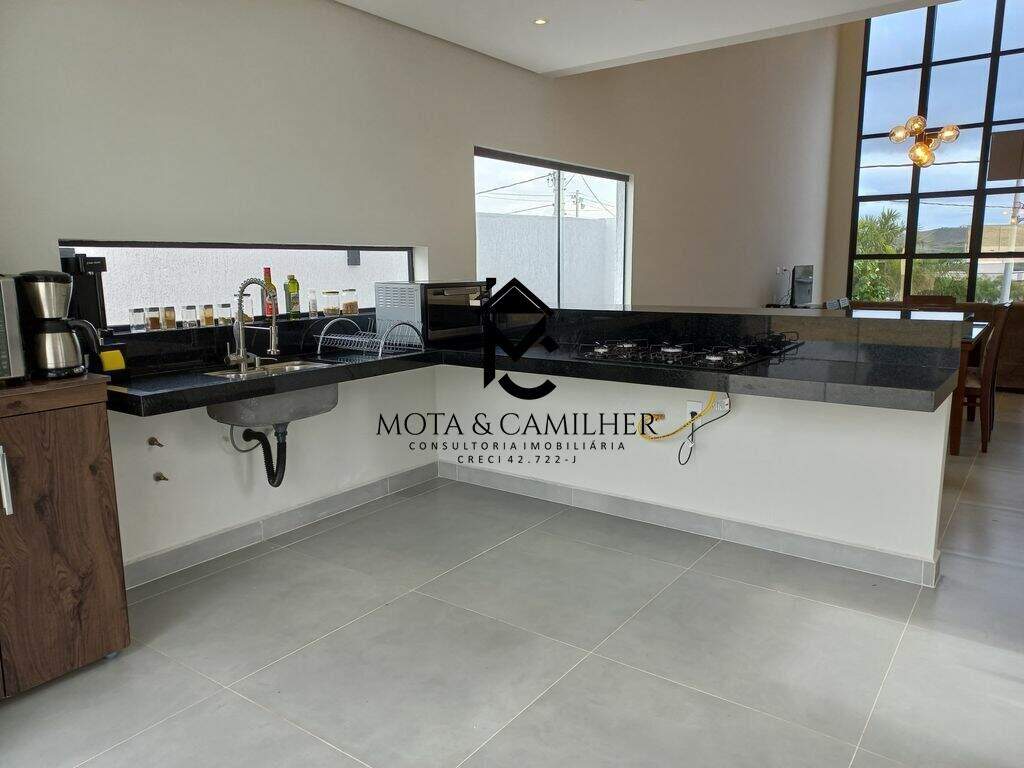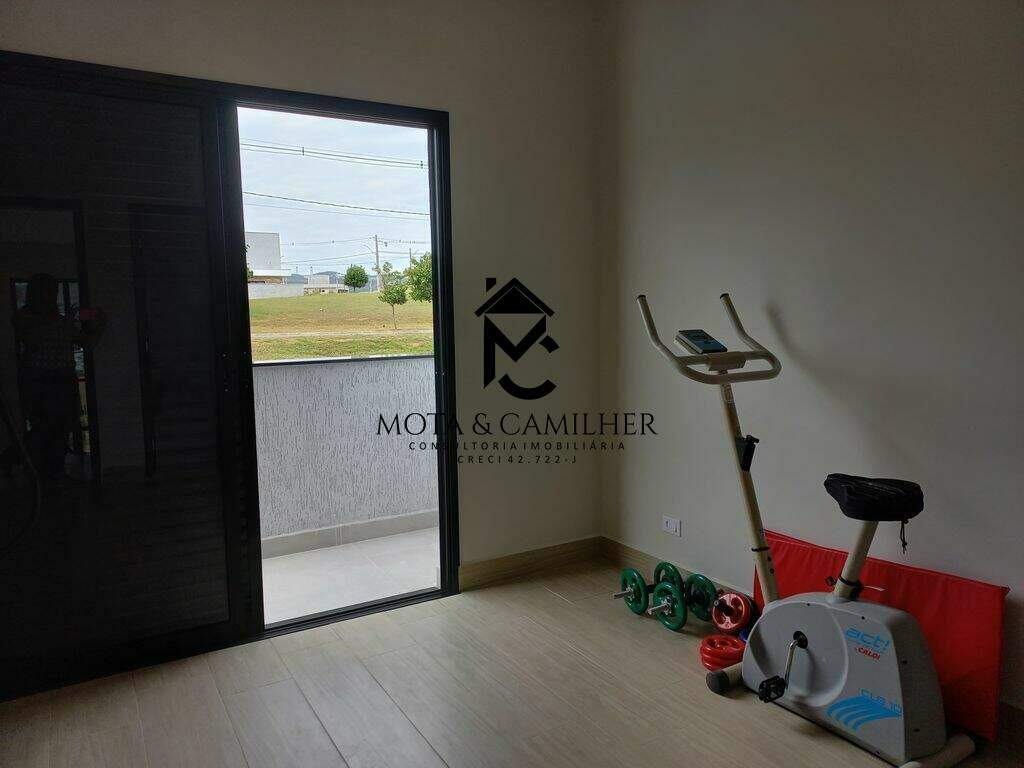 Sobrado com 202m² de área construída. Distribuídas em 3 dormitórios, sendo 2 suítes uma com closet e varanda, uma suíte júnior com varanda e um dormitório no andar inferior, salas de estar e jantar com pé direito duplo, cozinha americana, área Gourmet, 4 banheiros, escritório com entrada privativa, lavanderia espaçosa, garagem para 4 veículos, sendo 2 cobertos. Vista permanente e sem vizinhos de frente. Encanamento e fiação prontos para futura instalação de piscina. Condomínio com área de lazer completa: salão de festas, piscina de borda infinita, sala de jogos, academia, brinquedoteca, área para caminhada, playground, quadra poliesportiva, campo de futebol e área gourmet. Portaria e Segurança 24h.