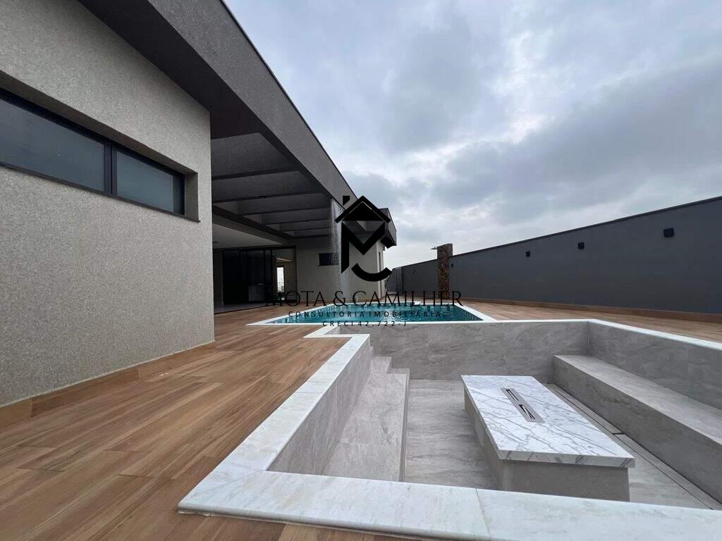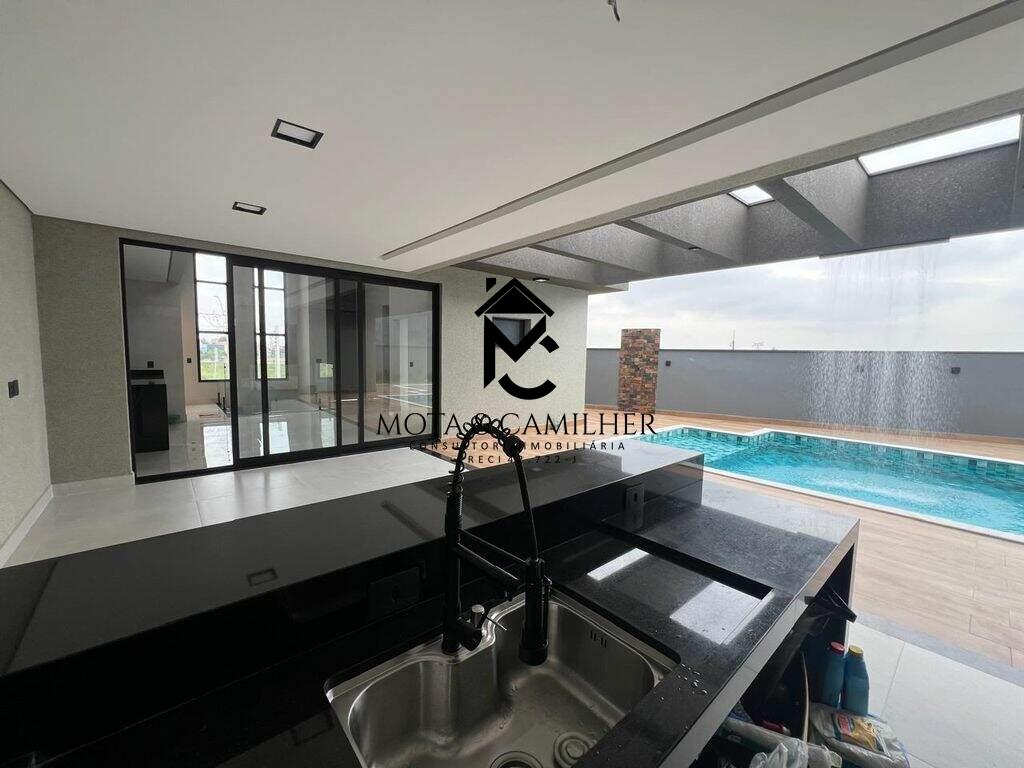 Sobrado alto padrão a venda no condomínio Santa Mônica. Com terreno de 540m² e construção de 320m², distribuidos em 3 suítes sendo 1 com closet, cozinha em conceito aberto integrada com a sala, escritório, sacada na sala com vista pra serra, banheiro social, varanda gourmet, piscina, fire pit, lavanderia, garagem para 6 veículos, sendo 3 cobertos. Sobrado com infra p ar condicionado e boiler.