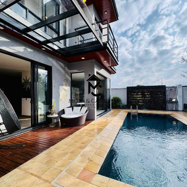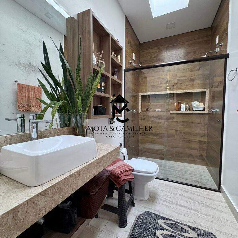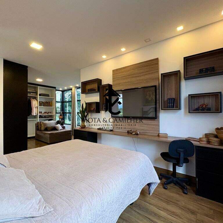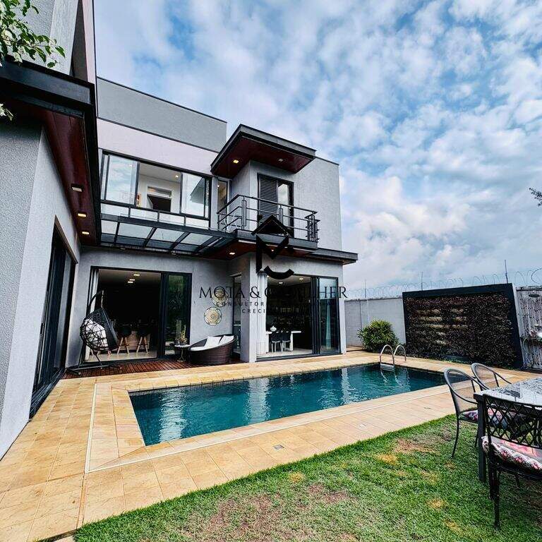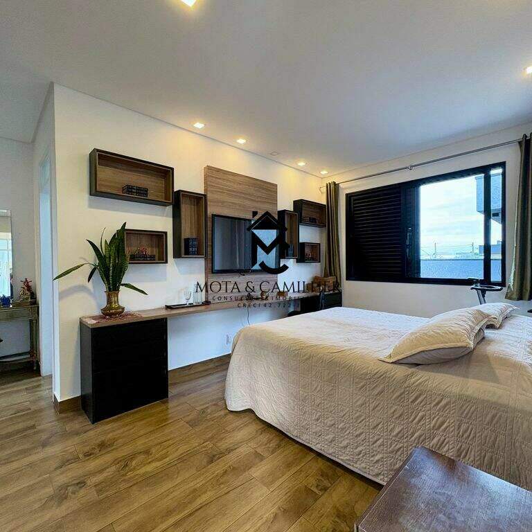 Sobrado de Alto Padrão à venda em condomínio de Taubaté. Condomínio Green Park - Em boa localização, próximo ao Taubaté Shopping. Ainda te permite fácil acesso ao centro em apenas 15 min. Sobrado com 360m² de terreno e 321m² de área construída, distribuídos em 3 dormitórios com 3 suíte, banheiro, lavabo, sala, escritório (pode ser revertido em dormitório), cozinha, área de serviço. Disponível 6 vagas de garagem sendo 2 coberta. Sobrado de alto padrão, com planejado em todos os cômodos, 2 dormitórios com closet, ar condicionados, 2 cozinhas, piscina. Área de lazer com piscina adulto e infantil, salão de festa, área gourmet, academia, quadras. E para sua segurança oferece portaria 24h e sistema de câmeras.